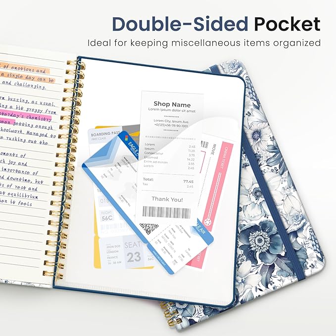 - Streamlined and Practical Design: Featuring 140 lined pages and a 6-page blank table of contents, our notebook provides generous room for note-taking and effortless referencing. An inner pocket safeguards miscellaneous items, while an elastic closure band ensures the notebook remains securely closed when not in use.