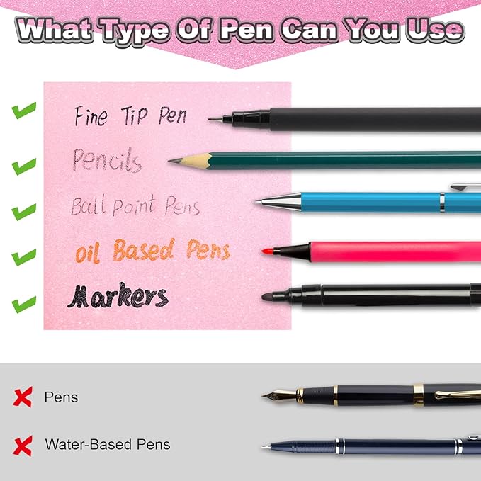- Pen Tips: Discover our professional Transparent Sticky Note Pens, designed for smooth writing and quick drying. These pens are ideal for writing on transparent sticky notes without smudging or staining your books. You can also use ballpoint pens, pencils, or markers with ease. However, we do not recommend using water-based pens for writing.