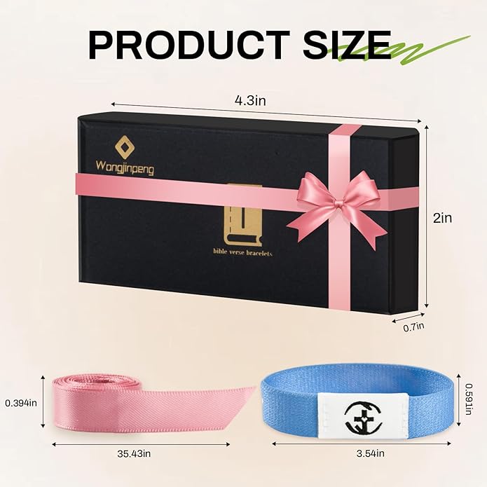 2 Pcs Bible Verse Bracelets,Daily Bible Verse Bracelet,Prayer Hope Bible Bracelets, Christian Gifts for Women , Graduation Gift,Inspirational Religious Gifts, Comes With A 35-inch Ribbon Bow