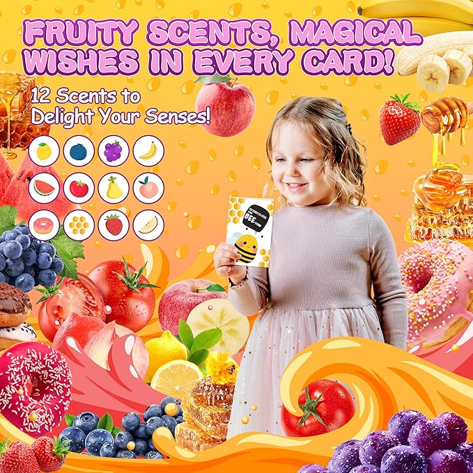 - 🍇Scratch & Smell, Safe Fun for Kids📜: Tageenla scented assorted cards are not only beautifully designed but also feature unique fragrances on the cover that release delightful scents when gently scratched. This design adds fun while ensuring safety, as all scent ingredients are non-toxic and perfectly safe for children.