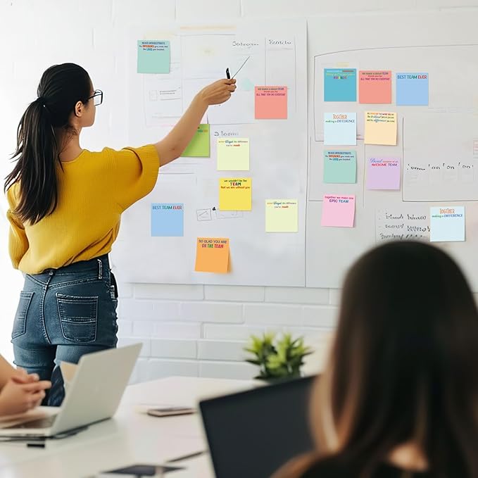 - Wide Applications: the sticky notes are suitable for writing information, sticky notes, shopping lists, schedules, to dos, etc.; They can be pasted on tables, refrigerators, walls, doors, and can also be placed in bags to help remind people to do something important or trivial matter; They are also a practical necessity for office workers, and can be applied in offices and homes