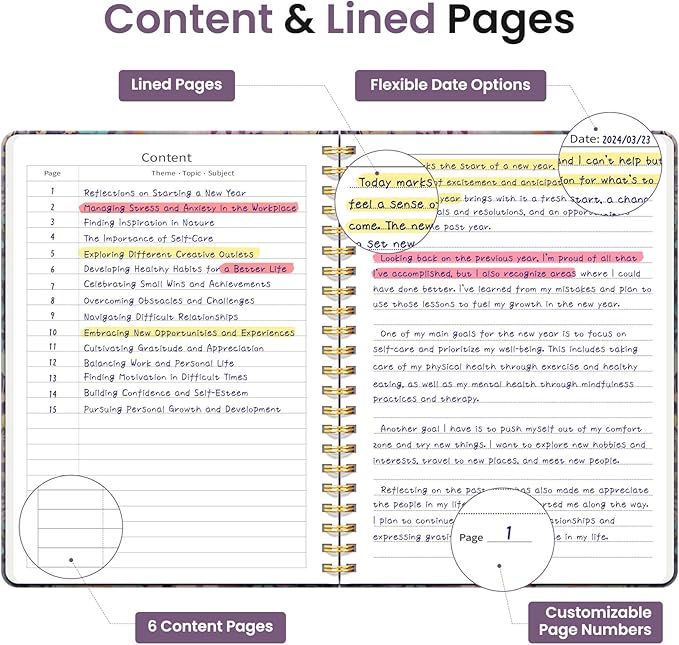- Sturdy Construction: Our Lined Spiral Journal Notebook is built to last with a sturdy metal twin-wire binding and a tough hardcover. The water-resistant cover shields your notes from damage, while the double-wire design allows for easy folding and flat laying.