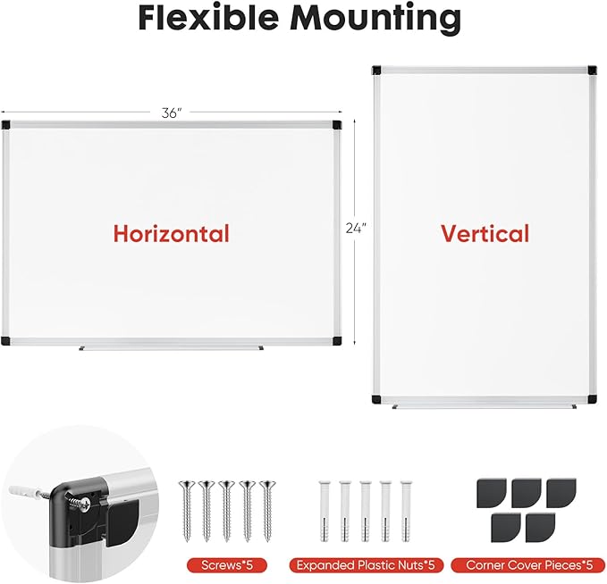 - 【Versatile Installation】Flexible installation, either horizontally or vertically.Easily customize the white board's orientation to fit your space and needs.