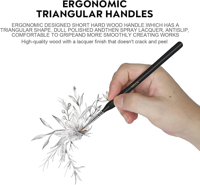 - Ultra-Fine Performance with Excellent Craftsmanship: Crafted with soft yet durable synthetic nylon bristles, The fine tip paint brushes have ultra-fine, split-proof points that can create even the most slender lines. Each brush is painstakingly crafted by hand, with multiple filament types achieving the highest loading ability, snap, point, or chisel. The result is a beautiful, even release of color.