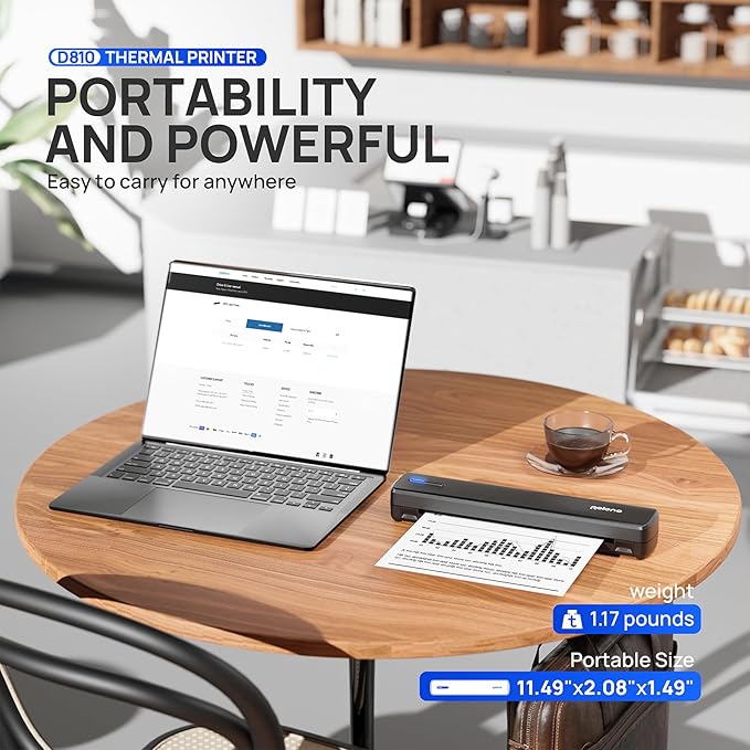 - 【Portable Printer】 This Printer Need to use Thermal Paper and DO NOT support regular copy paper. POLONO portable printer is small in size and weighs only 1.17 pounds. This portable design allows you to print wherever you need. Whether it's in your car, backpack, or during business travel, D810 bluetooth thermal printer is your reliable companion for office documents, inventory lists, business checks and more. This printer is also a tattoo stencil printer to print tattoo stencil paper.