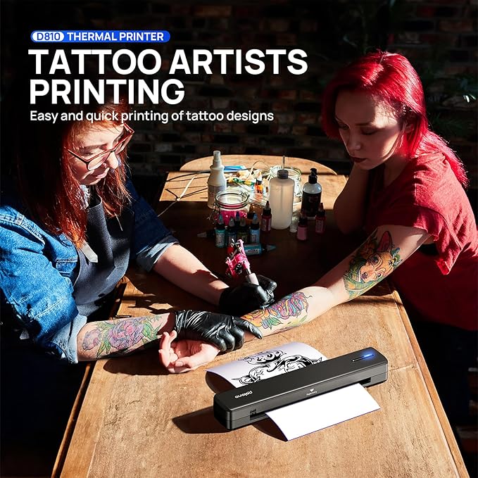 - 【Widely Use】 The package of D810 Portable Printer includes: D810 Printer, 20 Sheets of US Letter, user manual, guide card, U disk and a type-c cord. Note: charging adapter not included. Inkless portable thermal printer meet the needs of most workers. suitable for home, school, travel, office, outdoor, and other scenes to meet the printing needs of various people. This tattoo stencil printer also compatible with tattoo transfer paper, this tattoo printer is also ideal for tattoo artistics