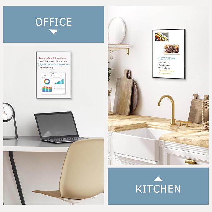 - 【Maximized Writing Area】With a slim border, the dry erase white board provides a 15.6" x 11.6" writing area, 15% larger than regular whiteboards