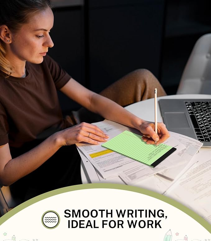 - 【 Widely Used 】The college ruled legal pad gives you more possibilities to use. Whether at home, school, the office, or on the go, small notepads are perfect for everyday use. You can use the mini legal pads to record to-do lists, memos, reminders, recipes, shopping lists, school notes, meeting minutes, important reminders, etc., or you can divide the 5x8 notepad into different scenes based on its color.