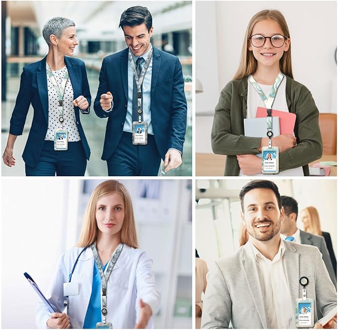 - π Premium-Quality Badge Holder: This set includes 2 retractable lanyards and 2 durable badge holders made of high-quality plastic. Lightweight yet sturdy, the holders protect your cards from damage and maintain their elegant appearance over time.