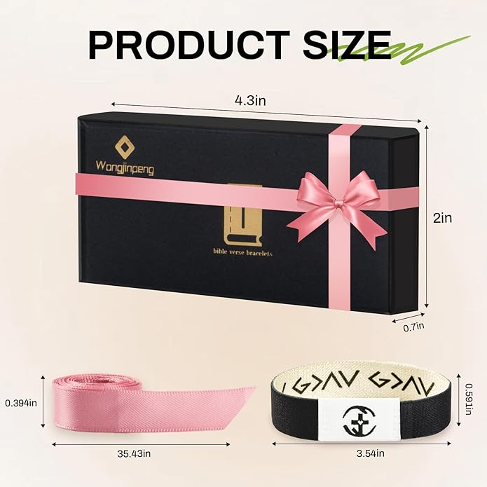 2 Pcs Bible Verse Bracelets,Daily Bible Verse Bracelet,Prayer Hope Bible Bracelets, Christian Gifts for Women , Graduation Gift,Inspirational Religious Gifts, Comes With A 35-inch Ribbon Bow