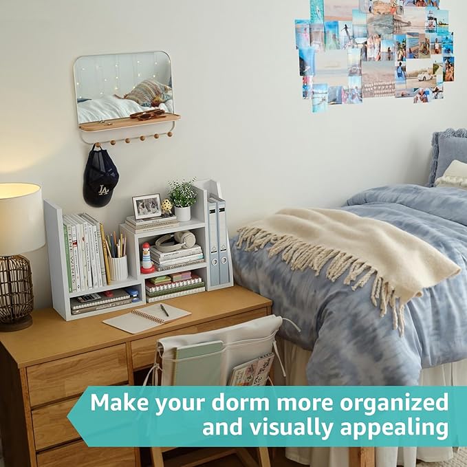 Desktop File Organizer Desk Organizer Shelf - White Office Organization Shelves for Top of Desk Organizers and Accessories Corner Bookshelf Table Top Shelving Small Hutch Decorations for Women Office