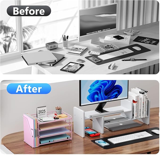- 【Versatile Storage】This desktop organizer features multiple storage compartments and a separate magazine holder, offering a variety of storage options to expand your desktop space. It effortlessly organizes your files, books, A4 papers, and office accessories, making it the perfect file organizer for your desk.
