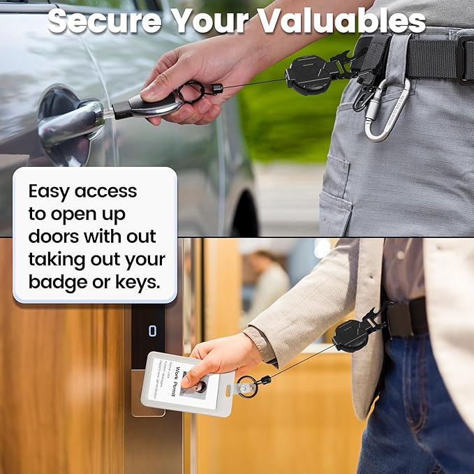 - 【Accessories for Adaptability】The badge reel comes with a zinc alloy carabiner and PVC badge clasp, which not only allows you to hang your badge holder, keys, gadgets, and other accessories, but also helps you to open the beer cap smoothly. It can be easily fixed on belts, backpacks and other items, it is also a practical gift for men, boyfriends, family and friends.