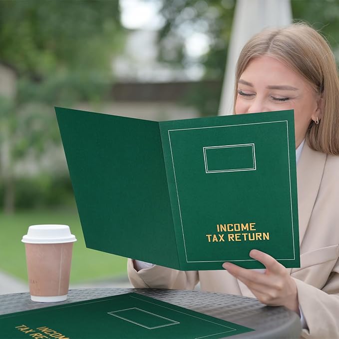 - Exquisite Design for Experience: the design of the folders with pockets bulk speaks volumes about their quality; Our green tax folders feature a practical design, saving you from complicated setup; The folder cover has Income Tax Return printed in gold; Easy to use and clearly laid out, allowing you to access your documents with ease