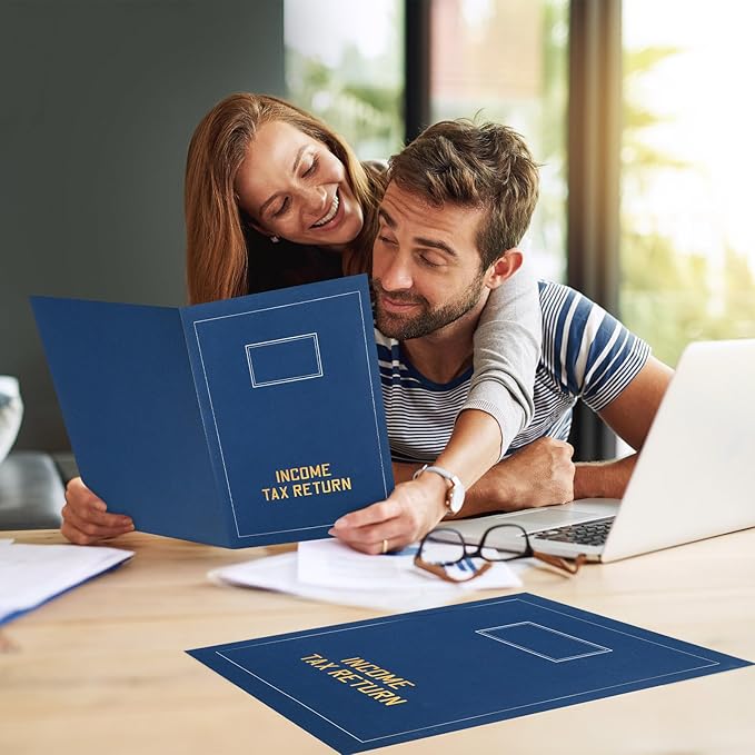 - Exquisite Design for Experience: the design of the folders with pockets bulk speaks volumes about their quality; Our blue tax folders feature a practical design, saving you from complicated setup; The folder cover has Income Tax Return printed in gold; Easy to use and clearly laid out, allowing you to access your documents with ease