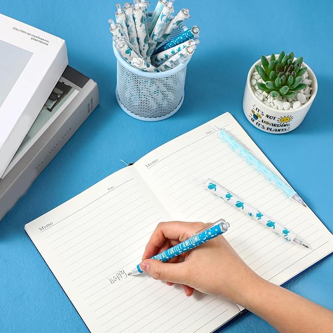 - Cute and Inspirational Gifts: our turtle pens are designed in 6 different styles, and each pen is printed with motivational statements and cute turtle patterns, bright in colors, unique in styles, which will add a gloss to the desktop and pencil case