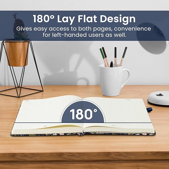 - Lay-Flat Design for Seamless Writing: The 180° lay-flat binding makes it effortless for both left- and right-handed users to write, draw, or sketch without any interruptions. With a perfectly flat surface, this notebook enhances your creative flow on any surface.