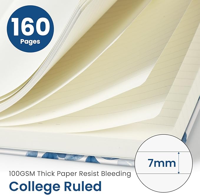 - Premium 100gsm Paper: Made with high-quality 100gsm paper, this hardcover lined journal ensures a smooth and enjoyable writing experience, free from ink bleed-through. Whether you use pens, pencils, or markers, your writing will remain clean and crisp, ensuring each note is beautifully preserved.