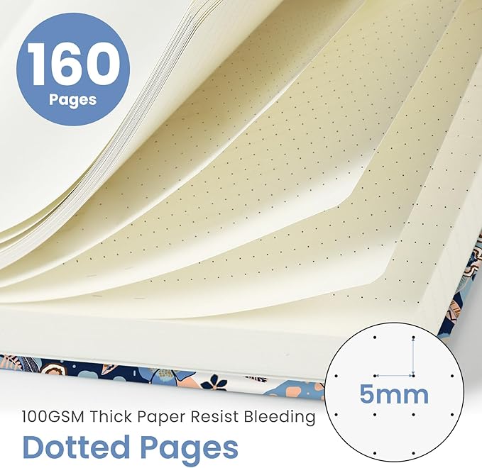 - 160 Pages Dotted Journal: Discover the freedom of 5mm-spaced dotted pages, perfect for bullet journaling, sketching, and organizing. The subtle dot grid provides structure without limiting creativity, helping you easily design layouts, track goals, and develop ideas in your personal style.
