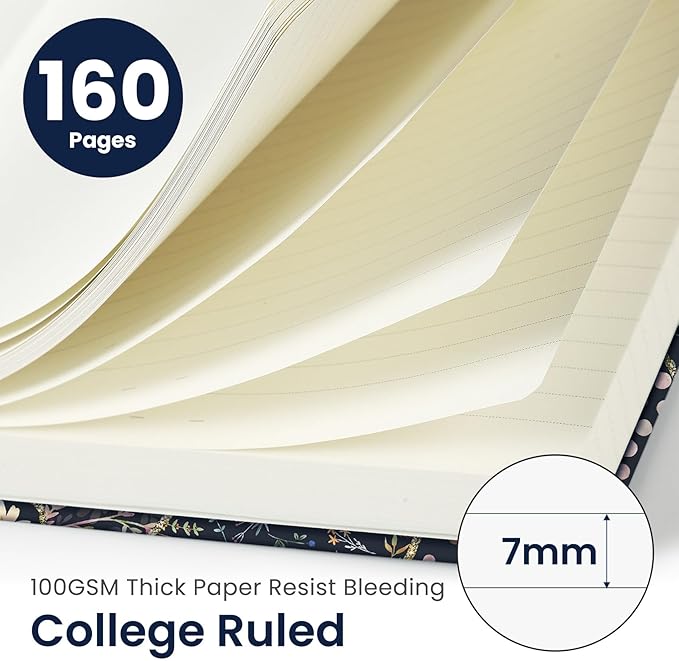 - Premium 100gsm Paper: Made with high-quality 100gsm paper, this hardcover lined journal ensures a smooth and enjoyable writing experience, free from ink bleed-through. Whether you use pens, pencils, or markers, your writing will remain clean and crisp, ensuring each note is beautifully preserved.