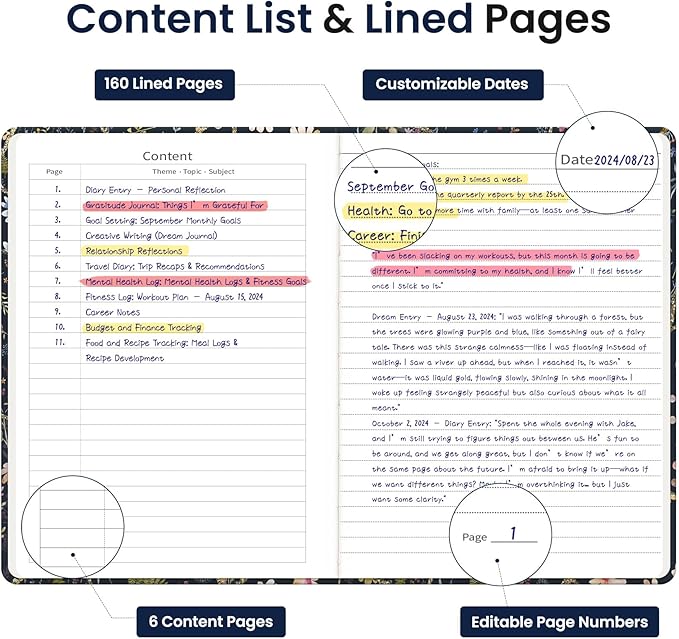 - Lay-Flat Design for Effortless Writing: The 180° lay-flat design makes writing a breeze for both left- and right-handed users. Whether you're jotting down quick notes or composing longer entries, this notebook provides total ease and comfort on any surface.