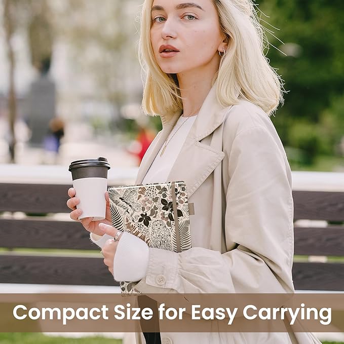 - Portable Size with Handy Extras: Sized at 5.7"x8.6", this medium A5 notebook is compact enough for easy carrying while still providing ample space for your creativity. The faux leather cover, expandable inner pocket, ribbon bookmark, and pen holder offer style and practicality for daily use.
