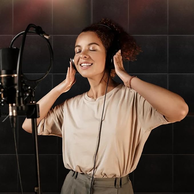 YOUEON 12 Pcs Black Felt Bulletin Board for Wall 12" x 12", Black Cork Board Alternative with Pushpins & Self Adhesive Stickers, Soundproof Wall Tiles, Pin Boards for Home Office School