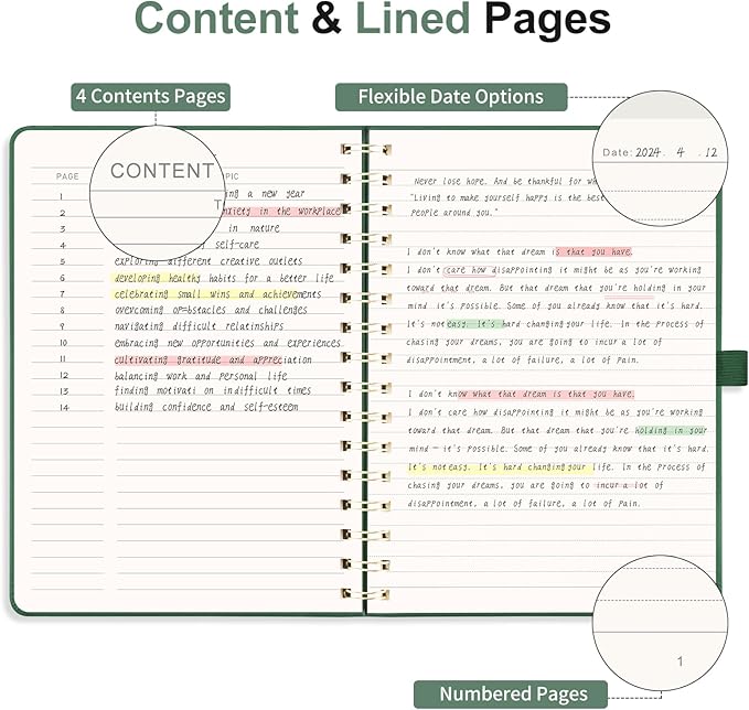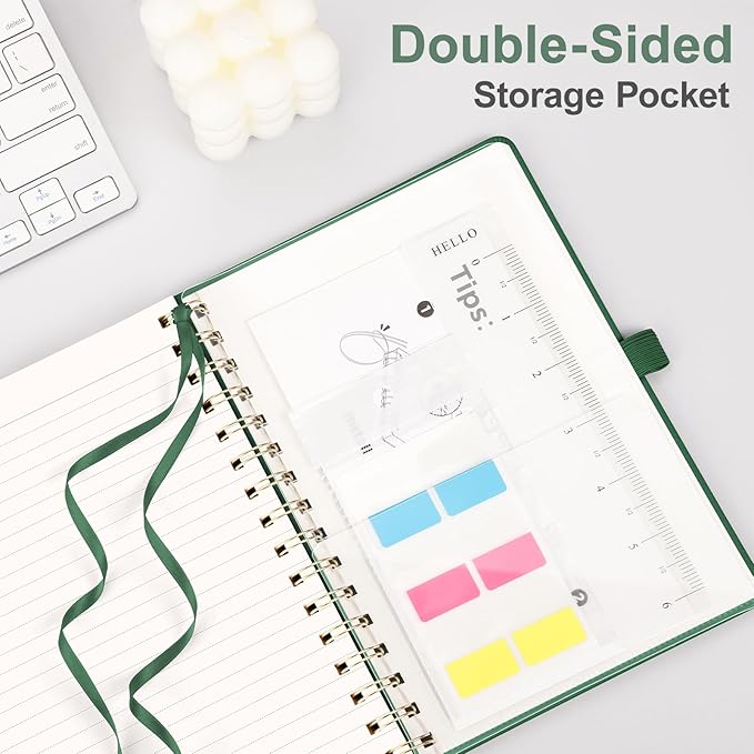 - Built to Last: Twin-wire spiral binding ensures 180° lay-flat use without page detachment, paired with a faux leather hardcover featuring sun-embossed patterns and rounded corners for professional aesthetics and daily commutes, backpack storage, and frequent flipping