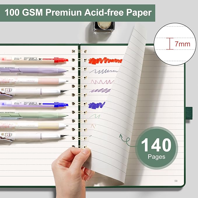 - 140 Pages with Premium 100GSM Paper: Each A5 notebook features 70 sheets (140 pages) of thick, ivory-colored paper (7mm line spacing, 25 lines per page) – smooth writing, no ink bleed, and numbered pages for easy organization. Perfect for daily use at home, office, school, or outdoor adventures