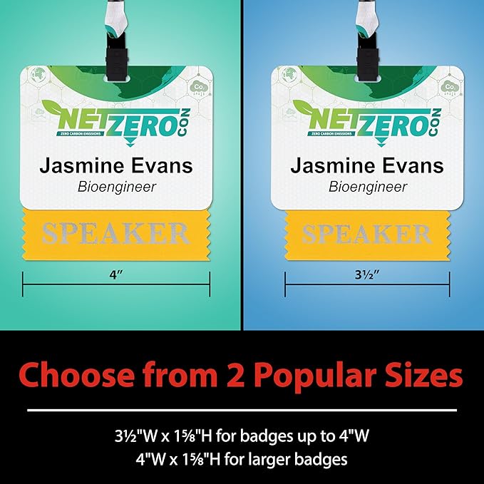 - VARIETY OF SIZES: Choose the fit that fits your needs with our two sizes of horizontal badge ribbon. Whether you prefer our most popular conference size of 4 x 1-5/8" or a smaller 3-1/2 x 1-5/8" size, these badge ribbons have you covered.