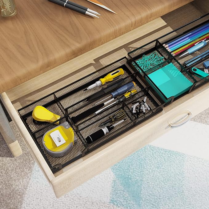 Desk Drawer Organizer, Metal Mesh Dividers Organizer (Blak-2P, Small)