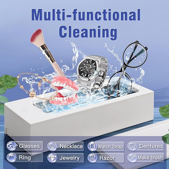- 💦ULTRASONIC CLEANER MACHINE: Our ultrasonic jewelry machine uses 55KHz high-frequency sound waves to clean small items, it can be used to clean eyeglasses, jewelry, dentures, watch coins, etc., without damaging delicate items. (adding ultrasonic cleaning agent solution can achieve better cleaning results)