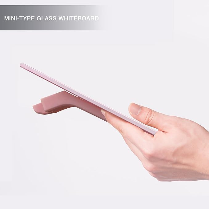 Small Glass Desk Whiteboard Dry-Erase Board with Clock, Small Travel Reminder Clock Keychain with Desk Notepad, Time Table Whiteboard for Desk Digital LED Light Display, 8x6 in with Accessories, Pink
