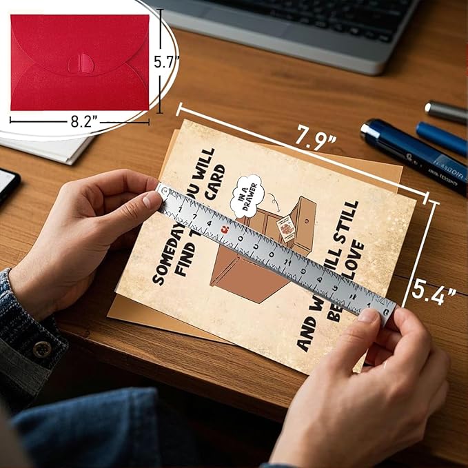 - 【Red envelope】250Gsm matte red envelopes to highlight the premium texture. Creating a sense of ceremony from the moment you unwrap it. The sturdy material ensures that the card will stand up to repeated readings, making it a treasured birthday memory - after all, who would want to throw away a card filled with laughter?