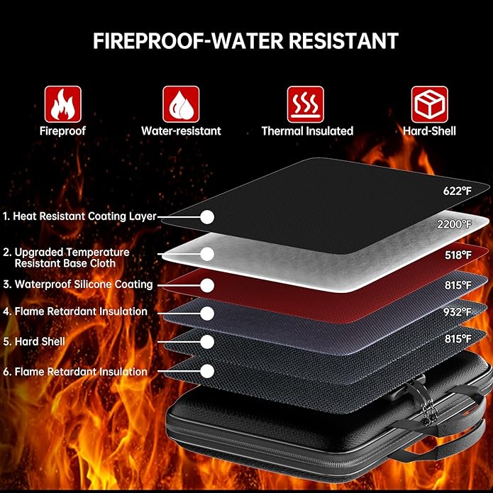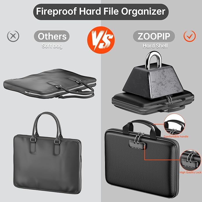 - 【Hard-Shell Fireproof Document Box】:Hard-Shell Design-not only offers fire protection but also boasts a sleek design.Equipped with a 3 digit combination lock-confidently store your personal items.The comfortable handle-makes it easy to carry.The metal zipper-enhances the box's sturdiness