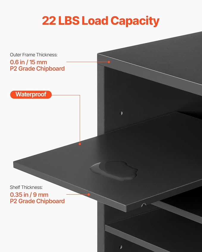 - Customizable Storage: Tailor the office mailbox to fit your needs! Each compartment measures 9.2 x 11.1 x 2.2 inches / 234 x 282 x 56 mm and can hold up to 500 sheets of A4 paper. With adjustable shelf heights ranging from 1.0-2.2 inches / 2.5-5.5 cm, you can easily modify or remove shelves to accommodate larger files or office supplies.