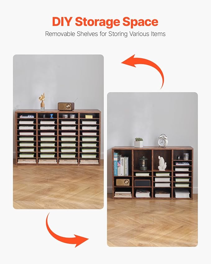 VEVOR Literature Organizer, 36 Compartments Office Mailbox with Removable Shelves, Wood Mailbox Sorter Particle Board Office Home Classroom Storage, File Sorter for File, Document, Paper, Retro Brown
