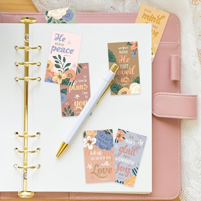 Floral Religious Motivational Mini Quote Cards / 50 Christian Encouragement Positivity Cards / 2" x 3.5" Flat Business Card Size / 25 Daily Devotional Uplifting Faith Designs / Made In The USA
