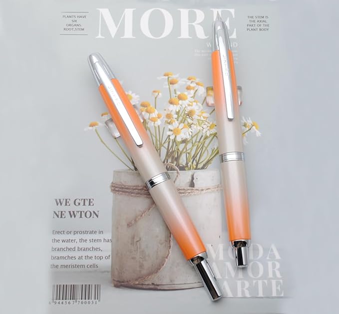 JINHAO 10 Press Fountain Pen, Retractable Metal Pen with Ink Converter (EF Nib 0.38mm, Gradient Orange)